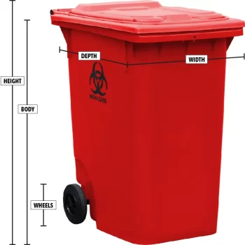 Waste-stream: Regulated Medical Waste (RMW)Total capacity : 384 Quarts | 96 GallonsDimensions : 41.9’’ (H) x 25’’ (W) x 35.1’’ (D